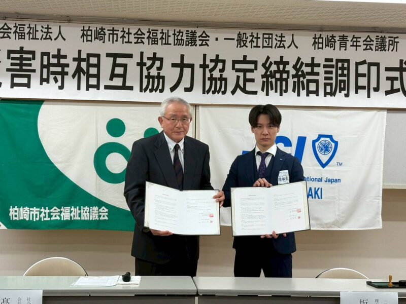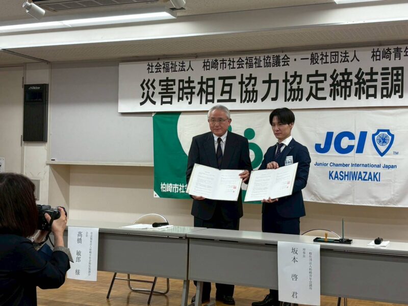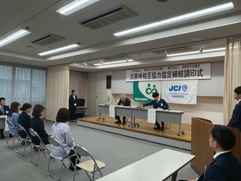 災害時相互協力協定締結のご報告 2025-10-06 10/1(水)、私たち一般社団法人柏崎青年会議所は、社会福祉法人柏崎市社会福祉協議会様と「災害時相互協力協定」を締結いたしました。地震や大雨などの災害が全国で頻発する中、地域の「つながり」と「連携」がこれまで以上に大切になっています。今回の協定は、柏崎市社会福祉協議会様が災害ボランティアセンターを開設する際に、JCI柏崎がその運営補助や人材・機材の提供などで連携していくという内容です。また平時においても、災害ボランティア活動や被災者支援に関する研修・セミナー・訓練などの情報を共有し、年に一度以上の交流を通じて相互の連携を深めていきます。この協定を通じて、平時には地域の防災力を高め、有事の際には被災された方々の支援に力を尽くせるよう、今後も柏崎市社会福祉協議会様と連携して活動してまいります。